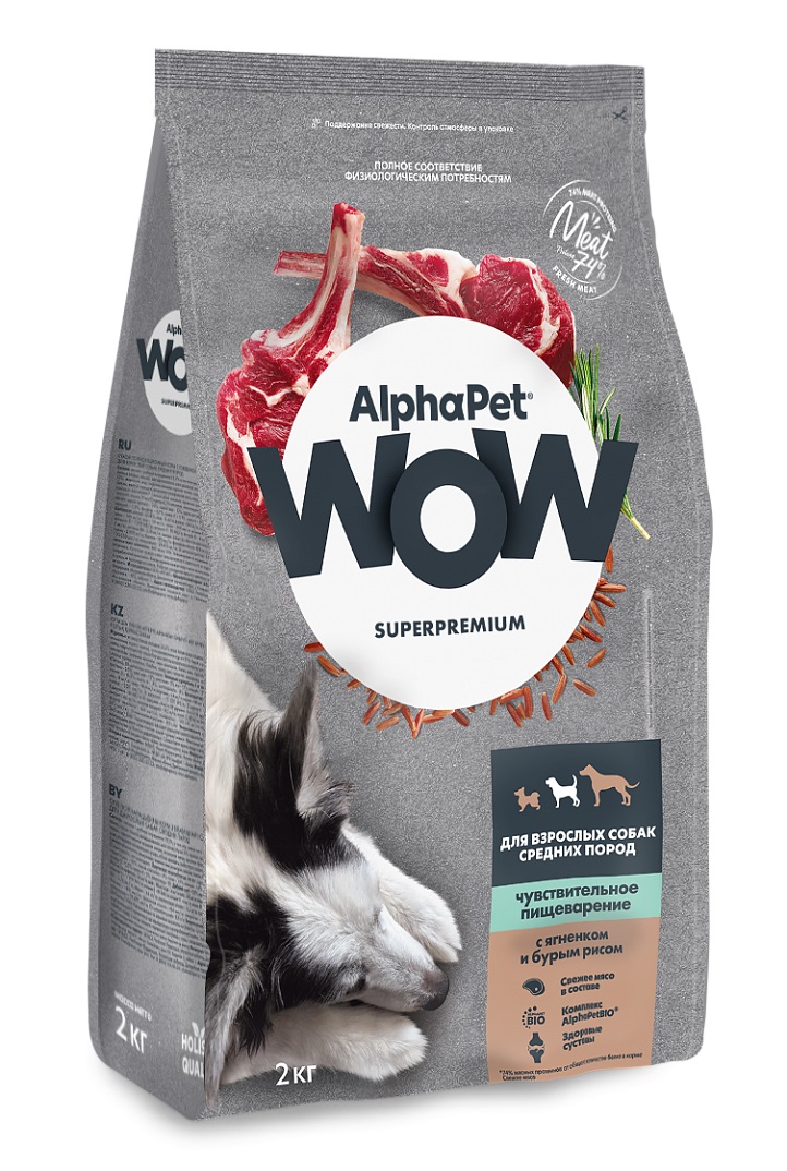 AlphaPet WOW SuperPremium сухой ГИПОАЛЛЕРГЕННЫЙ корм для собак Средних и Крупных пород с чувствительным пищеварением (Ягненок и бурый рис)